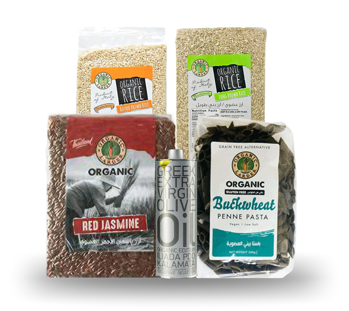 - Long Brown Rice 1kg, Round Brown Rice 1kg, Thai Red Jasmine Rice 1kg, Buckwheat Penne Pasta 300g, Greek Extra Virgin Olive Oil 500ml Long & Round Brown Rice, fluffy and soft. Thai Red Jasmine Rice, fragrant and fiber-rich. Buckwheat Penne, gluten-free and nutritious. Greek Extra Virgin Olive Oil, premium and cold-pressed. Wholesome, versatile, and perfect for daily meals..